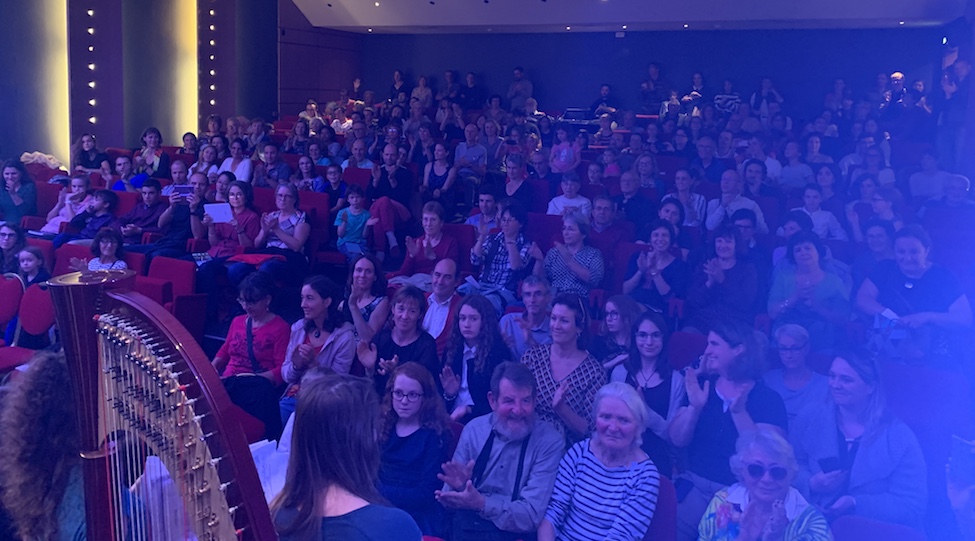While the festival weekend peacefully unfurled, behind the scenes nearly thirty young harpists and their heroic teachers were intensively rehearsing for Sunday’s grand finale. Where possible, we love our Camac Festivals to culminate in a performance involving the harp classes of the region we are visiting. The work of teachers at school level throughout any country is where all music-making begins: without them, the senior conservatoires would have nobody to teach, and then there would be no professional musicians. Nor would there be the amazing community of amateurs, who are enriched by their musical studies in all sorts of other ways.