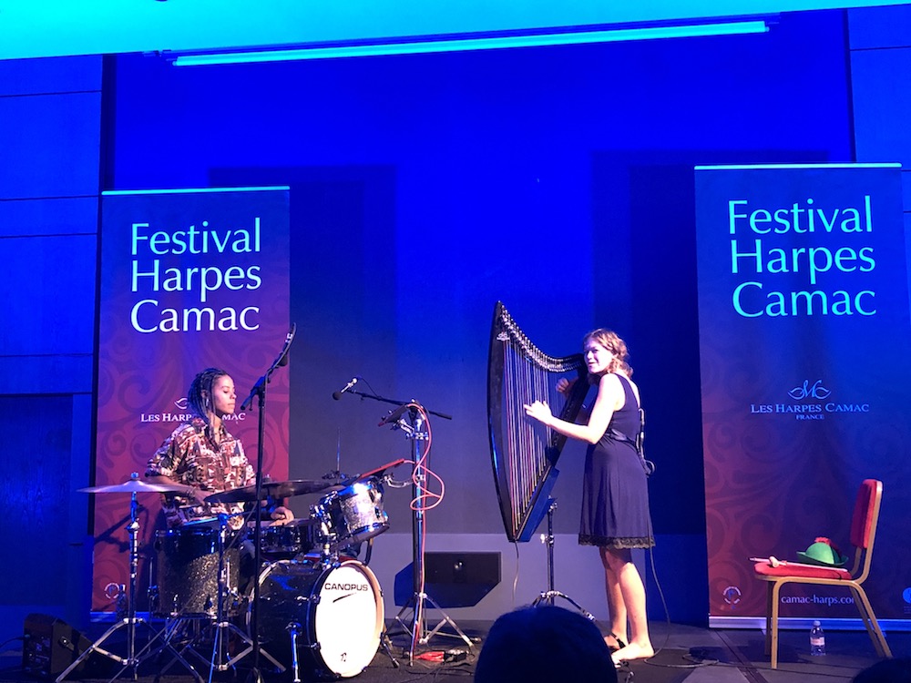 After an hour, we had to let Veronika go, because it was time to change the set for our second concert of the evening. Breton harpist Nolwenn Arzel, accompanied by Loïc Bléjean on low whistle and Uilleann pipes, brought the music of the Celtic lands to the South of France.