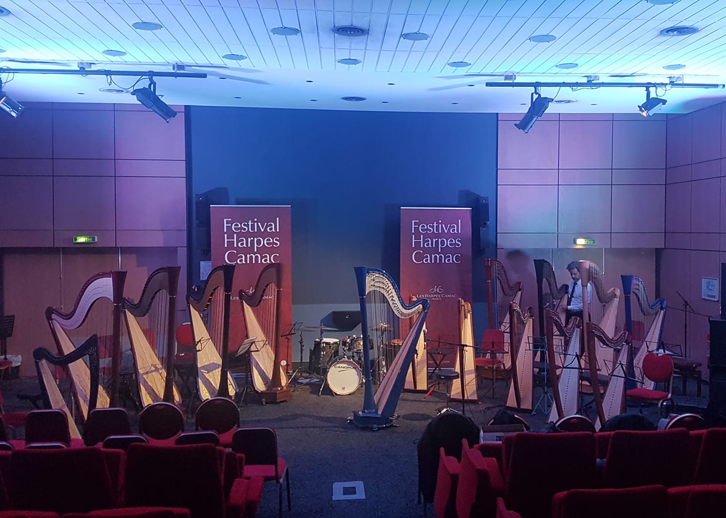 Alongside the artistic programme, Eric Piron and our commercial team were busily manning the exhibition. The one at the Camac Festival is the biggest touring exhibition of our season, and our “rentrée” (after the summer holidays) is always full, preparing and regulating our new instruments for the festival, and overhauling our second-hand stock. We bring these harps too, because we seek to accompany you in the development of your instrument, close to your home. Whether you are visiting our exhibition to rent your first lever harp, find a second-hand pedal harp, or a new concert instrument…convenience and continuity is very important to us, in what is always a substantial investment for you. We also always bring our technicians to our festivals, so that you have the chance to have your instrument regulated without an expensive trip to the capital.