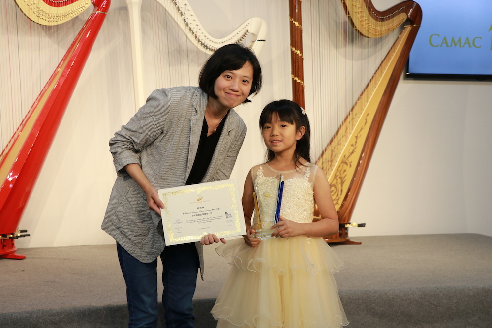 - Judge Chenyu Huang with winner of the junior lever division, Serene, Shiu-Ning Tu