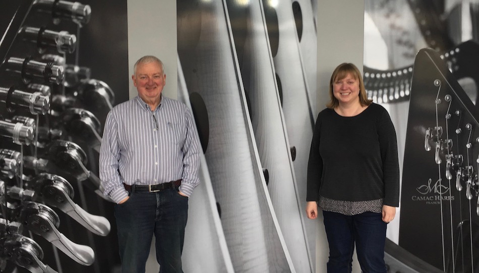 Telynau Vining Wales · Cymru have been Camac partners for the last eighteen years. They have just extended their Cardiff premises, and their own programme of special and touring events also continues to go from strength to strength. It is our pleasure to collaborate with them in bringing a special selection of exhibition harps, and sending our head technician Enric De Anciola to carry out sponsored regulations.