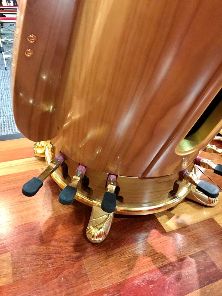 Nonetheless, we wanted to do better for concert soloists, recording artists, and all harpists with very high-level requirements regarding the quietness of their pedals. This development has been several years in the planning, because we wanted to find the quietest possible leather, without moving to felt. We went through many different prototypes with many different kinds of leather, tested in real scenarios by individual concert artists over significant periods of time.