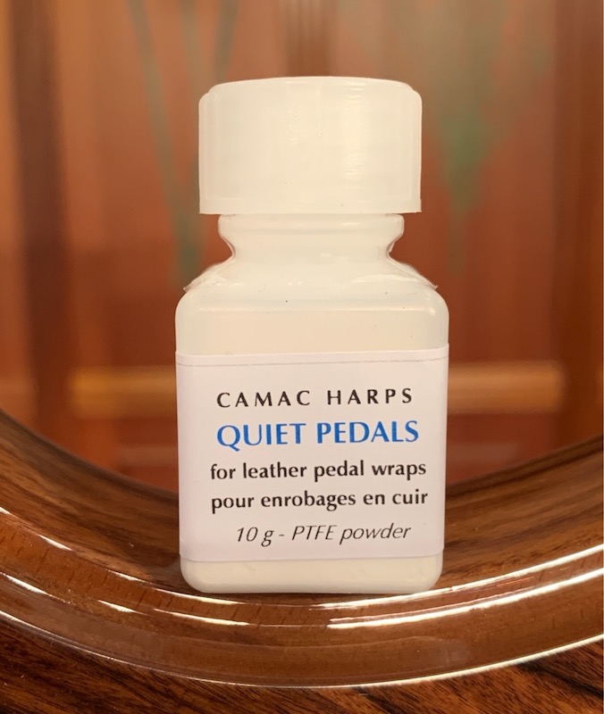 All our high-end concert harps (Elysée, Trianon, Oriane, Canopée and Art Nouveau) are now delivered with our optimal leather pedal wraps as standard. On our online boutique, we also sell the special talc that you should apply regularly to the leather to prevent any squeaking. We originally received this powder from Steinway, who use it to reduce hammer friction – a contribution from piano technicians that has helped us arrive at our final result.