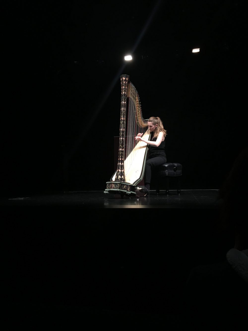 Students also had a chance to explore new territory with Ben Creighton Griffiths. Harpists of a certain age may still think of Ben as a classical wunderkind, but he is also making an increasing name for himself in jazz. We are very happy to sponsor him often. He gives excellent improvisation workshops for all ages and stages, which we warmly recommend to anybody interested in getting to grips with jazz. On-stage, Ben has been working a lot with his blue harp, synths and keys, creating a whole band while often remaining the only performer. His most recent album, 1 Man Band, was released a year ago – in San Sebastian, we saw him developing the concept still further, with the addition of drum pads and other intriguing kit. You can hear this to good effect below.