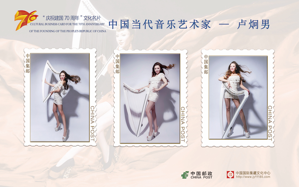 Harpist stamp collectors can acquire a limited number by contacting Wu Duoli of Beijing Aria · Camac China.
