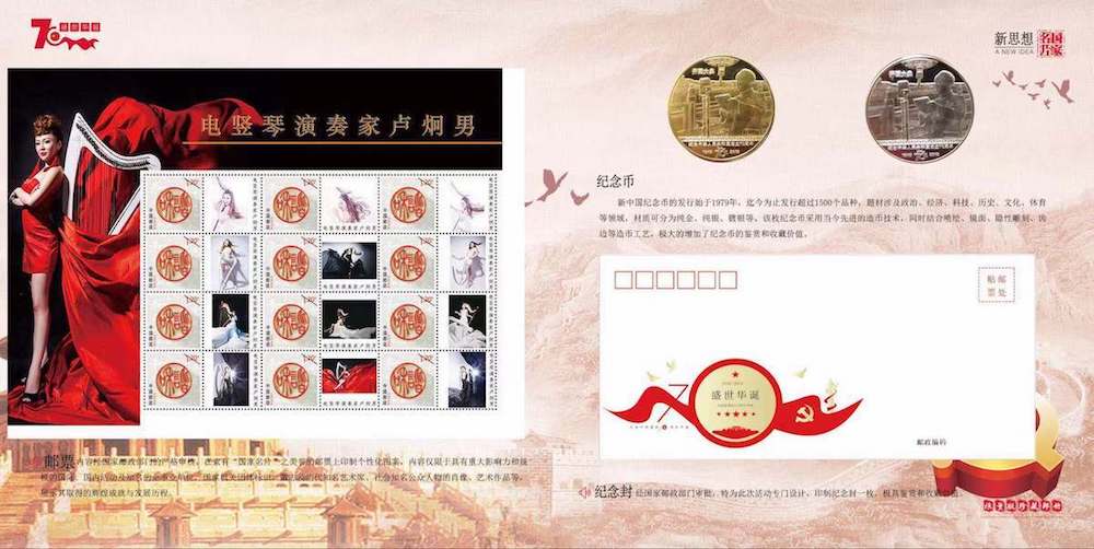 Camac’s DHC electric harp is featured on a beautiful collection of stamps, just released by the Chinese Government. They are all with harpist JiongNan Lu. Following her studies in Prof. Wei Lin Lin’s class at the Central Conservatory of Music in Beijing, she has focused on electric harp performances. She has appeared regularly on China Central TV, her first album (“E-Strings”) was broadcast on Chinese radio. She also has a well-known duo with the 埙 / Xun, a traditional Chinese instrument.
