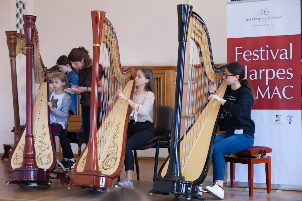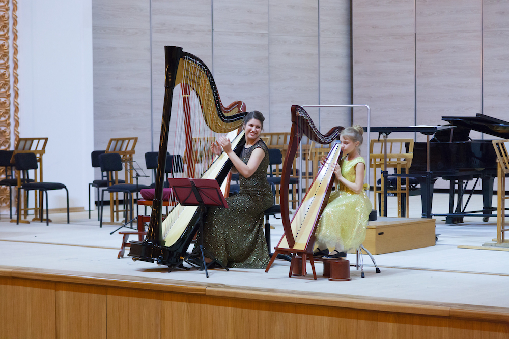 The ‘Glowing Harp’ contest is organized by a well-travelled competition veteran: Veronika Lemishenko. Veronika was a member of Milda Agazarian’s formidable class in Moscow, and is now Principal Harp with the widely-acclaimed Ural Philharmonic in Ekaterinburg. She performs all over the world, from the Folles Journées in Nantes to the Royal Academy of Music in London; we have been delighted to invite her twice in 2019 (to Lisbon, and Toulouse). Frequent travelers also love to come home, and after so many journeys, Veronika has based her competition in her native city of Kharkiv in Eastern Ukraine. She has also organized it together with her first teacher of all, Larysa Klievtsova. In the Kharkiv Special Secondary Music School, an academic grammar school with special musical focus and the possibility to board, Larysa steadily trains children to play the harp well – with a good position, warm sound, considered musicality and intelligently-chosen, well-prepared programmes. This is not as easy to achieve as it sounds, including in many a far more comfortable economic circumstance in the West.