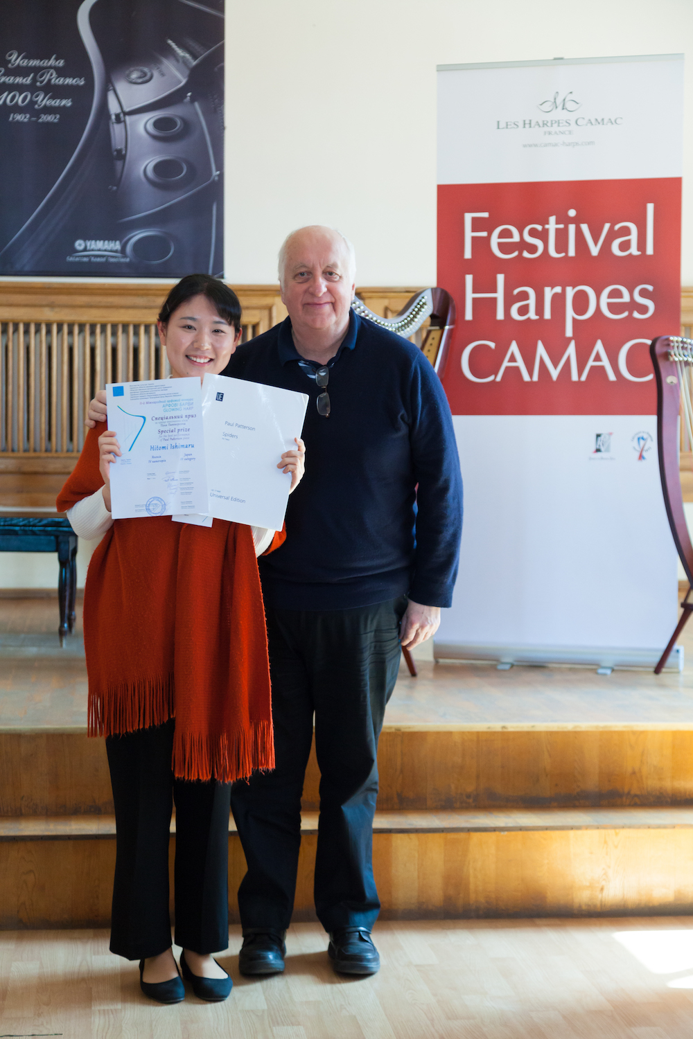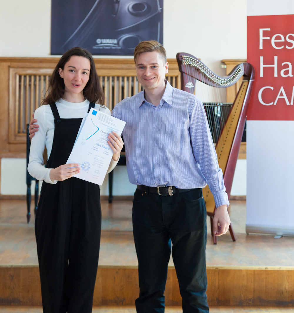 Composers – another group not always famed for their profound grasp of the harp – also lent their valuable support. Eugen Andrev composed “Souvenir”, a new work especially for the senior category, and everybody was delighted that Paul “Spider-Man” Patterson could be part of the jury. One of today’s most expert and energetic composers of harp music, Paul is also unceasingly generous with his time. His regular presence at harp events allows harpists of all ages and stages to work in detail with a living composer, on a large body of well-written and enduring repertoire.