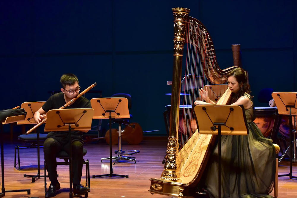 La fondatrice de Rave Harps a également interprété un nouveau morceau de Phang Kok Jun où l’influence de l’Asie du sud-est – comme dans la nouvelle composition de Watson – était très présente, grâce à l’utilisation d’instruments orientaux tels que le Dizi (une flûte chinoise) et le Sheng (orgue à bouche chinois). Un autre morceau de Phang Kok Jun, “Pelog fantasy”, inspiré par le Gamelan, musique traditionnelle de Java et Bali, fut interprété par Viva Rave, un ensemble singapourien professionnel de harpes, qui a également interprété “Golden Orb” d’Eric Watson.