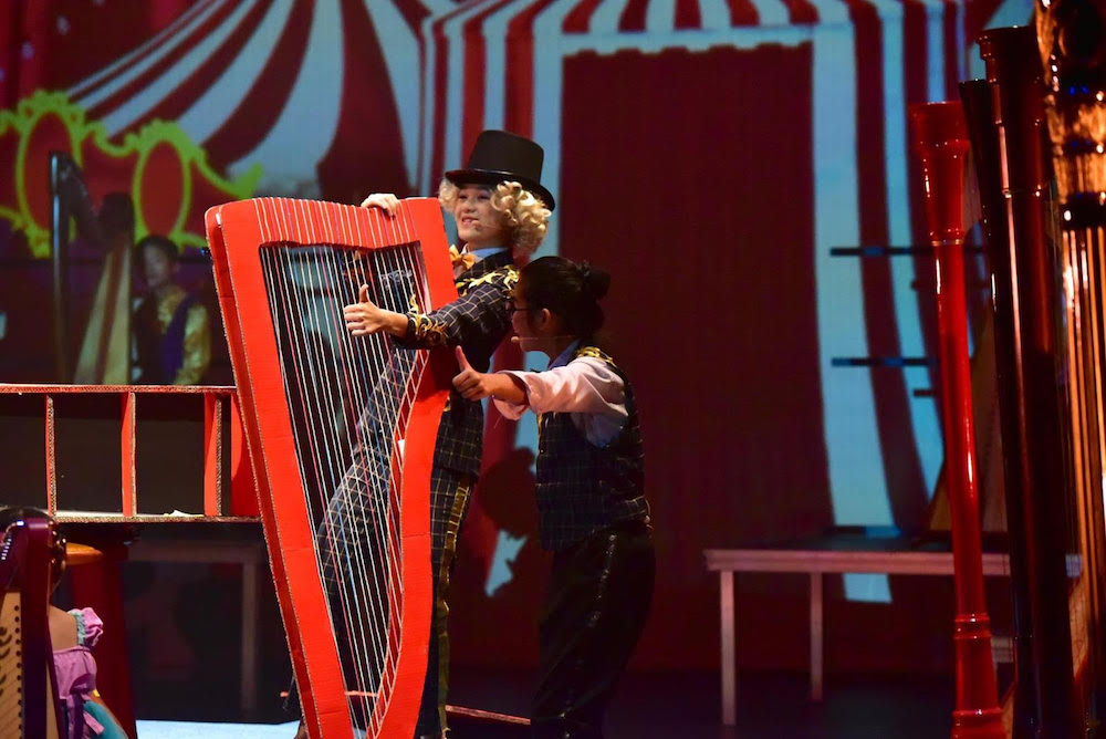 En cloture, cette dernière journée offre, comme dans chaque édition, la création la plus attendue du festival : sa comédie musicale de harpe. Au fil des ans, l’événement est tout simplement devenu un incontournable. Qu’on y assiste pour la première fois ou non, ces spectacles sont toujours un pur bonheur. Cette année, la création 2019 s’intitulait “Legends of the Harp” (Légendes de la Harpe), une intrigue imaginée par Katryna et mise en musique par Julian Wong. L’histoire raconte comment quatre personnages légendaires liés au monde de la harpe – Jack et le haricot magique, Harpo Marx, le Roi David et le Dieu irlandais Dagda, sauvent le monde d’un terrible géant.